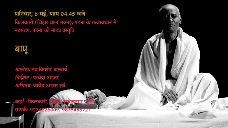 Bapu is the most recent production by Natmandap. The play has been directed by Parvez Akhtar and performed by Javed Akhtar Khan. The play was first performed in Prem Chandra Rangshala, Patna in March 2017. The event was three days long and had seminars and exhibition on Mahatma Gandhi. The play revolves around the plight and suffering of Gandhi in his last few days.