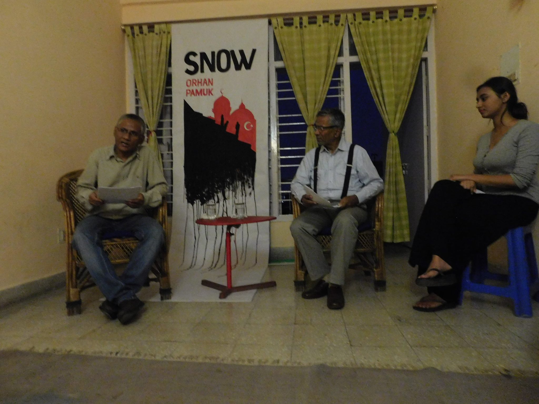 “Mujhe Maaf Kijiye Sir” is a performative reading of a portion taken from Orhan Pamuk’s famous novel Snow. The reading is designed by Vinod Kumar and performed by Javed Akhtar Khan, Parvez Akhtar and Tanaya.